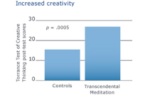 Поединците кои научиле Трансцендентална Медитација покажале зголемена креативност во споредба со другите медитативни техники, што се гледа од зголемената сликовита оригиналност измерена после пет месеци на практика. Тие исто така покажале и зголемена креативност, што се гледа од зголемените нивоа на сликовита флексибилност и вербална течност.